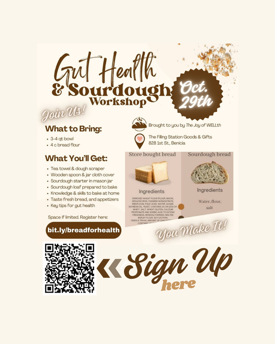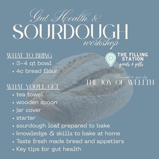 Sourdough bread is renowned for its potential health benefits, particularly in supporting gut health. The fermentation process not only enhances digestibility but also introduces beneficial probiotics. If you're interested in learning how to create a sourdough starter and prepare your first loaf, sign up for one of our monthly workshops below!