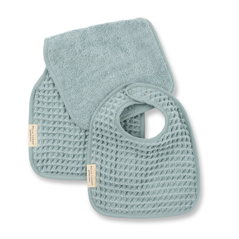 Keep yourself and baby clean, comfortable, and colorful with our reversible burp cloth and bib. Featuring our luxe lofty waffle weave on one side and a soft, absorbent terry on the other. All fabrics are OEKO-TEX® certified and sustainably sourced, but the commitment to our environment goes deeper - our recycled polyester is made from plastic bottles removed from oceans and landfills. Each Reversible Bib and Burp set keeps 4 plastic bottles out of landfills.