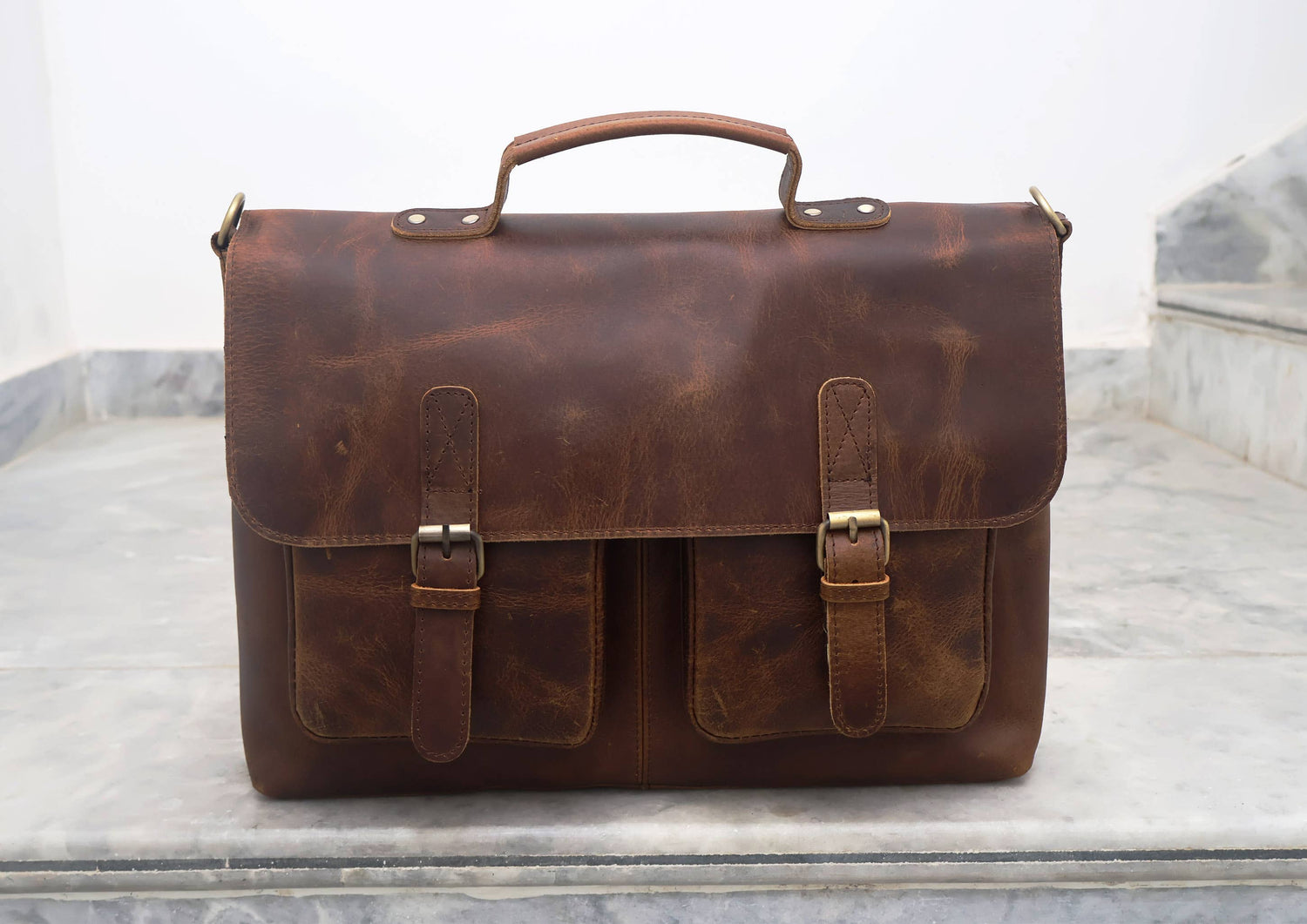 This 100% genuine buffalo leather travel bag is the perfect blend of style and functionality. The bag features a rustic, antique look and feel. Its classic design is timeless and offers plenty of room for your daily essentials. It is ideal for everyday use, travel, and even formal occasions. From the durable materials to the stylish design. The shoulder strap of this bag comes with a shoulder pad for extra comfort. The strap is detachable and adjustable. You can wear it on the shoulder or across your body. ◆Product name: Leather bag ◆Material: Leather, Brass YKK Zipper, Polyester, Brass polished push buckle ◆Inner lining: Polyester ◆Detachable and adjustable shoulder strap ◆Storage: 3 main compartments and 2 open pockets ◆Size: 12 x 16 x 3.5 Inches LAPTOP COMPARTMENTS: Medium Size 12 x 16 Inches can accommodate 16 Inches Laptop.