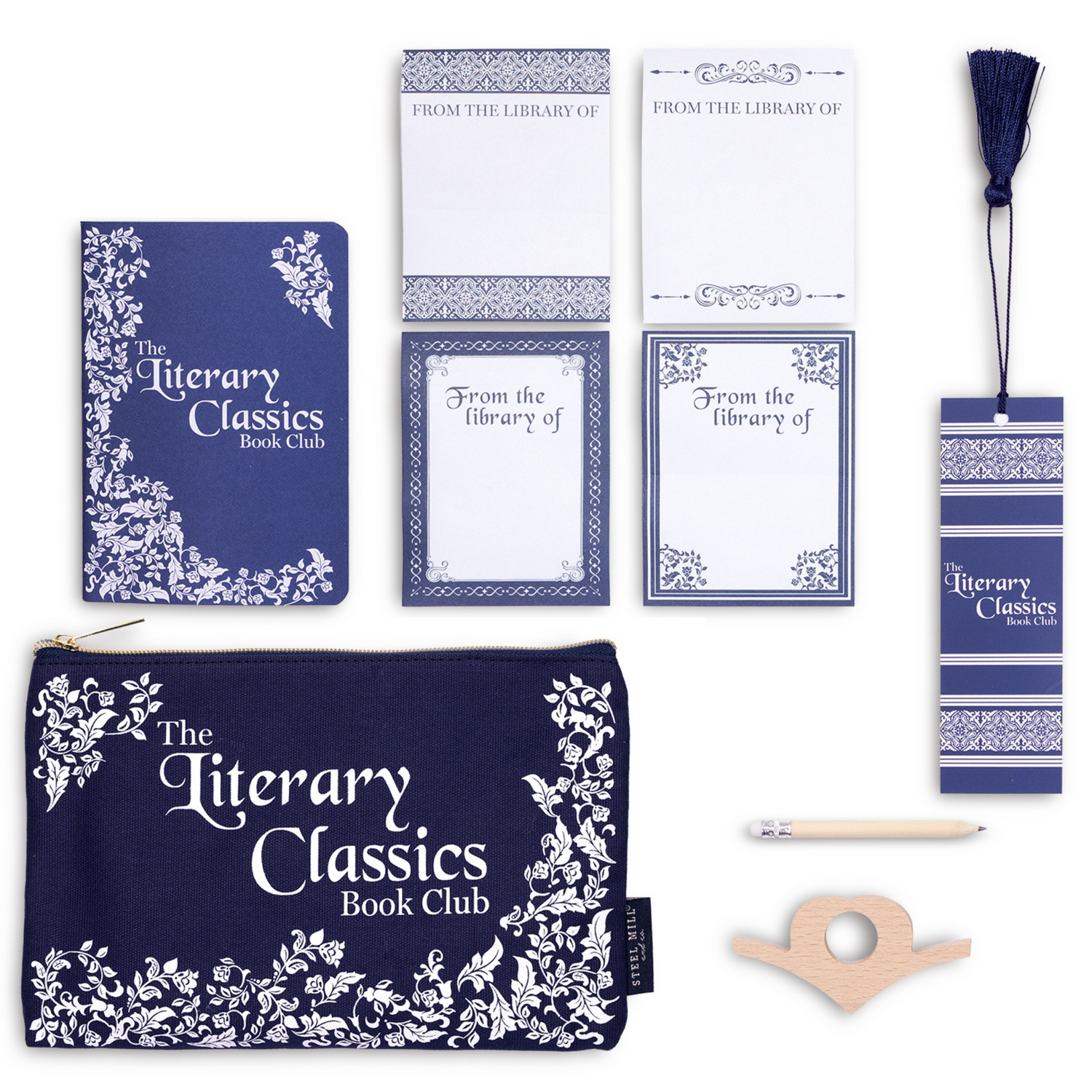 Whether you're diving into the latest bestseller or revisiting a beloved classic, this book club kit has everything you need to make your reading experience more cozy and personal. Thoughtfully curated for book lovers and club members alike, this set turns any reading session into a special occasion. Inside the versatile canvas pouch you’ll find all the tools to enhance your literary journey: a sturdy book holder for comfortable reading, a tassel bookmark to keep your place, a small reading journal to capture your thoughts, a wooden pencil for quick notes, and a set of book plates so you can personalize your at-home library.