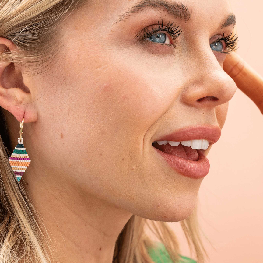 Carmen Mini Gold Hoop Horizontal Stripes Beaded Drop Earrings Muted