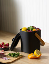 Let's send less to the landfill! Convert your own organic waste into compost to enrich the soil in your backyard. This award winning bin is perfect for storing organic scraps before transferring them to an outdoor compost pile or collection site. The filtered lid helps to absorb any smells caused from off-gassing. Includes a bamboo handle for hassle-free transport.