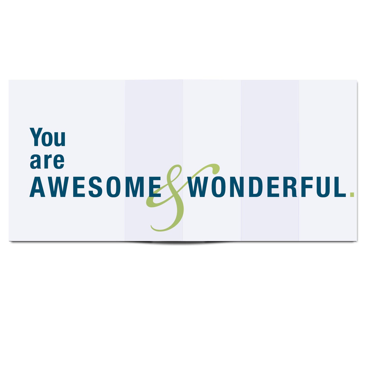 • A6 sized (4.5" x 6.25") when closed. The right-side accordion fold opens to reveal a surprising message (open size is 13.5" x 6.25")