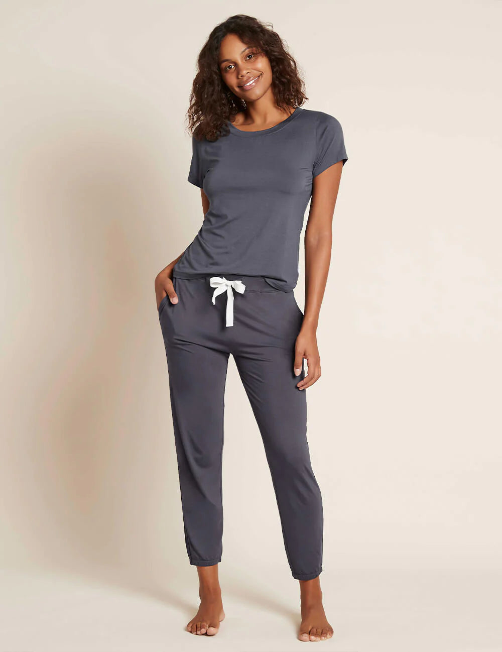 Sleep easy in our breathable, light to wear and soft to touch Goodnight Ankle Sleep Pant. Our comfortable Goodnight Ankle Sleep Pant is a relaxed fit, designed with an elastic waistband and drawstring waist. Mindfully made with a straight leg and soft elastic cuffs sitting just above the ankle - this easy to wear style has three pockets. No zippers, buttons, ties or other irritants - just ultra-soft fabric crafted in a loose, relaxed fit for bed.