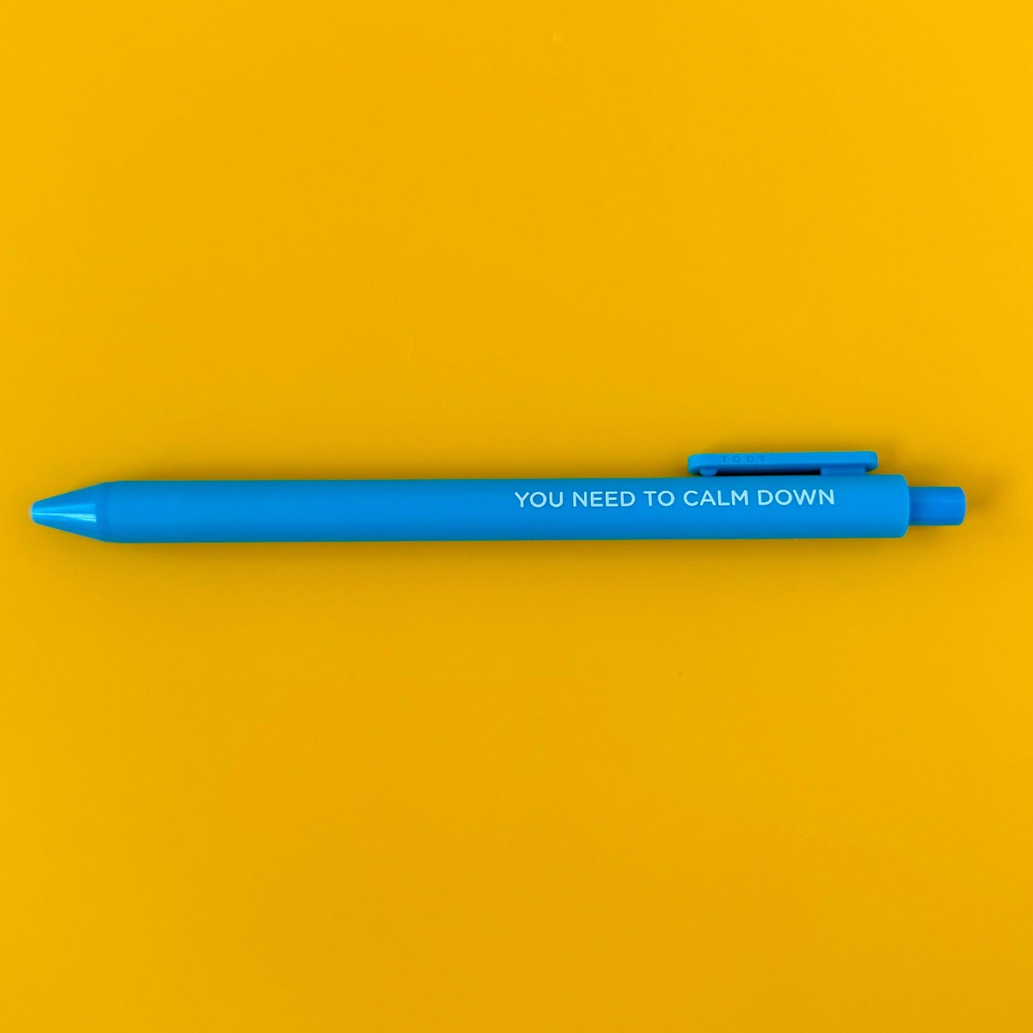 You need to calm down - bright blue barrel with black ink