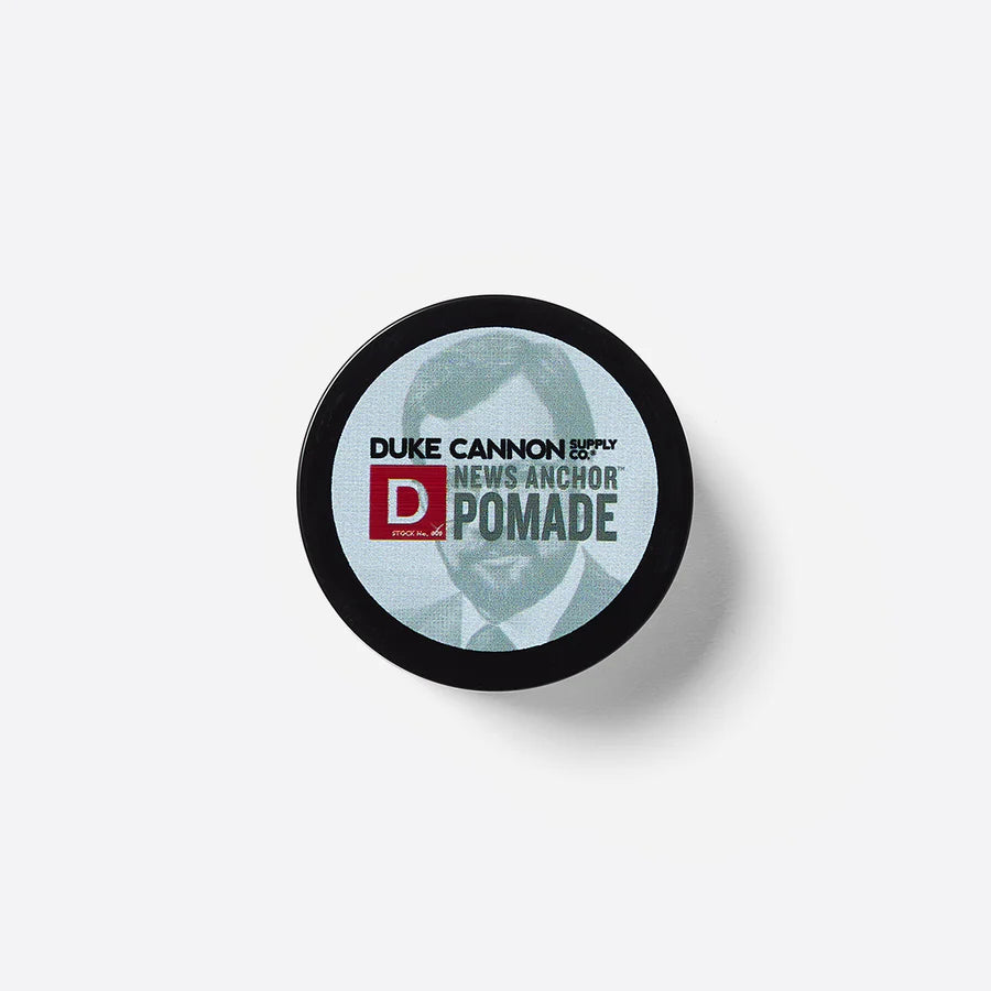 Duke Cannon’s News Anchor Pomade works on all hair types, delivering a natural matte finish to provide a classic, camera-ready look. Offers a medium-to-strong hold and a protein blend that strengthens and repairs your hard-working crown. Prepare your hair for award-winning, 'round the clock coverage with Duke Cannon’s News Anchor Pomade.