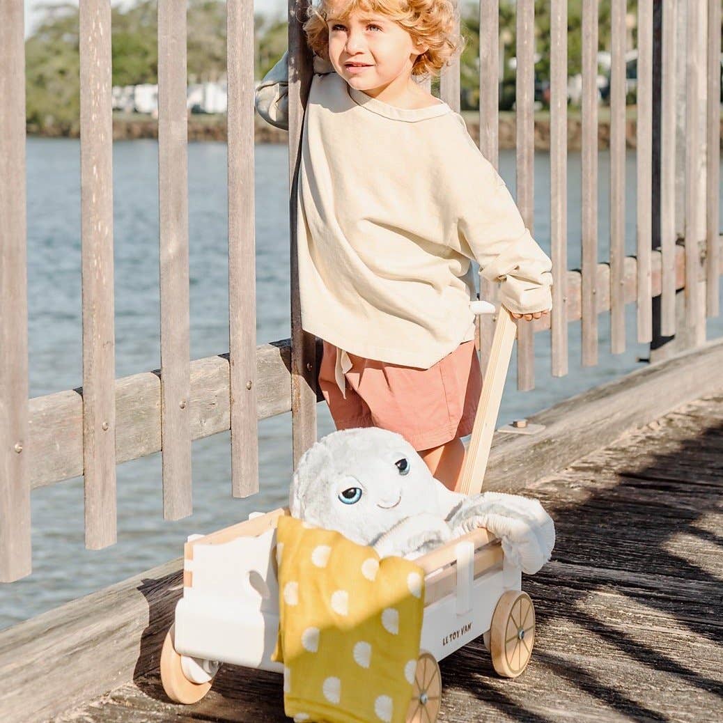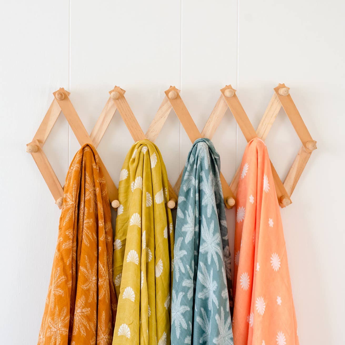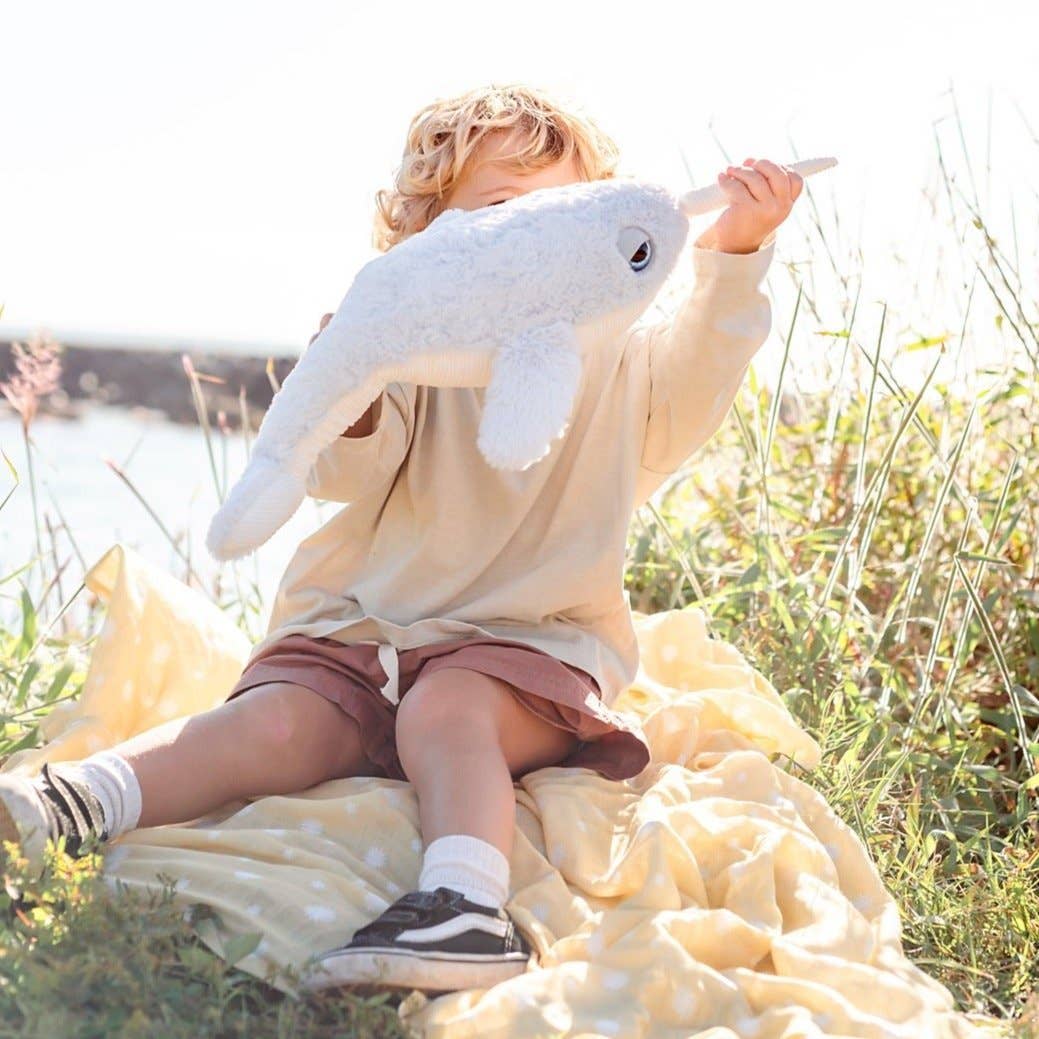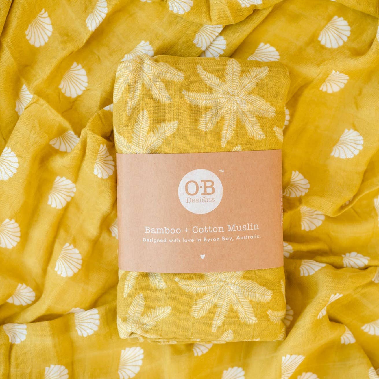 OB's ethically made bamboo + cotton muslin wraps in ocean shell print are an incredibly useful baby accessory for all parents. Boasting chic designs and made from eco-friendly, ultra-soft bamboo + cotton, our muslins are used as baby swaddles, baby comforter and security blankets, baby nursing accessories, changing mats and more. As a new or expectant parent, having a go-to store that has ethically-made baby accessories and soft toys online, is a treat we take pride in giving to you. As a sustainable baby store, each one of our baby products is made with your baby's best interest at heart.