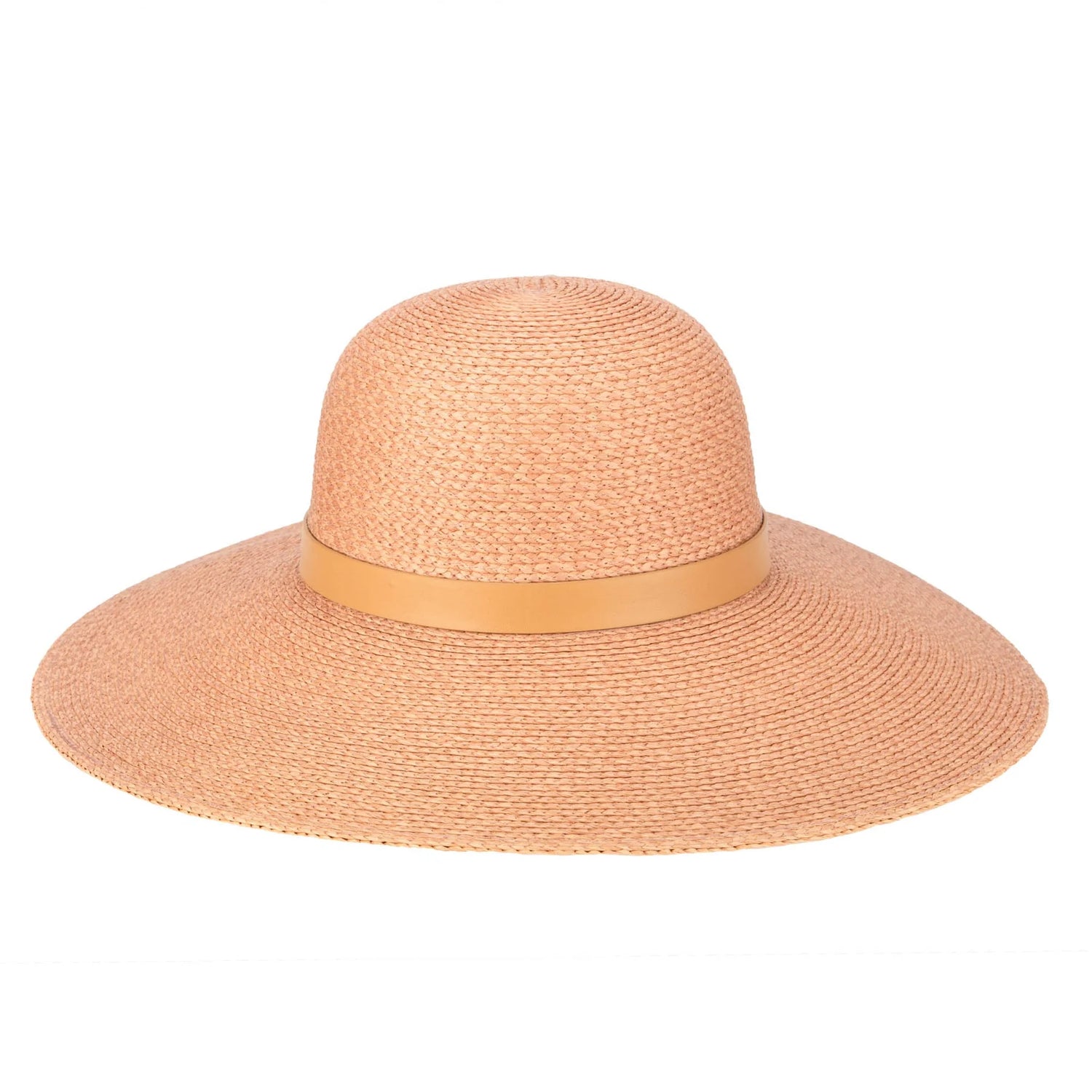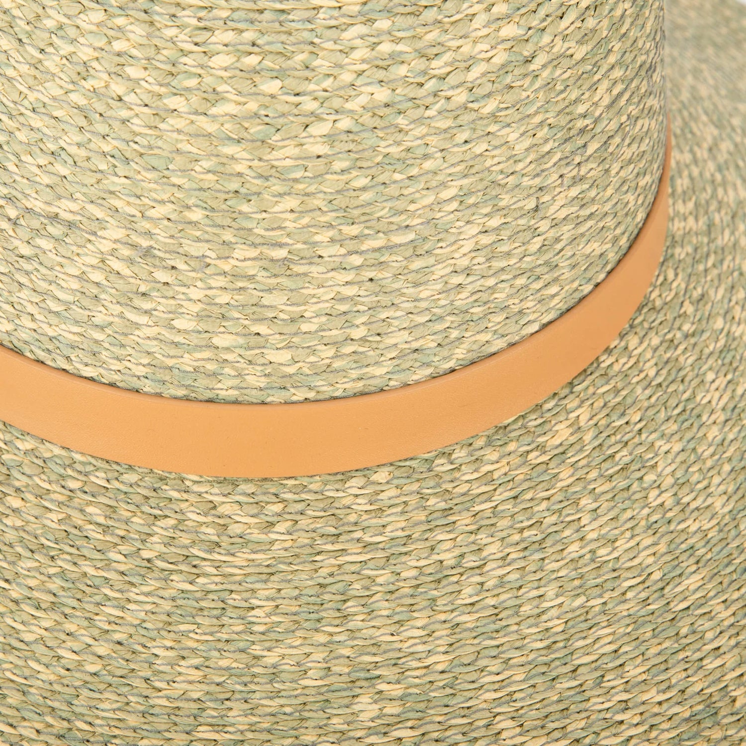 Women's sprayed textured paperbraid round crown sun hat with tobacco faux leather band