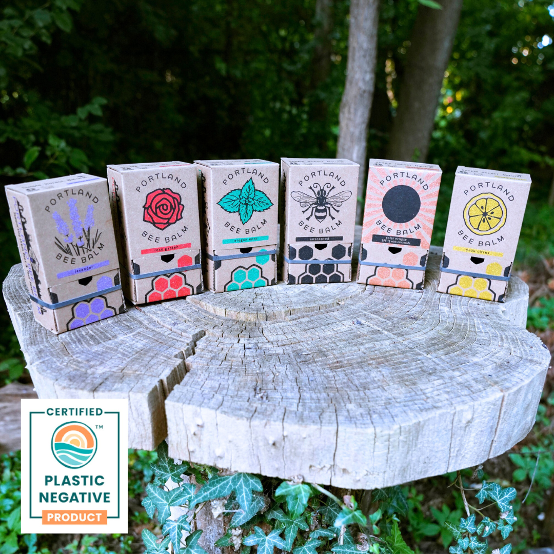 The 24-count display box keeps these balms neatly organized and easy to grab from your counter or shelf. With its cherry wood label, clear mission of saving pollinators, and simple, natural ingredients, our balms are perfect for sustainable shoppers.