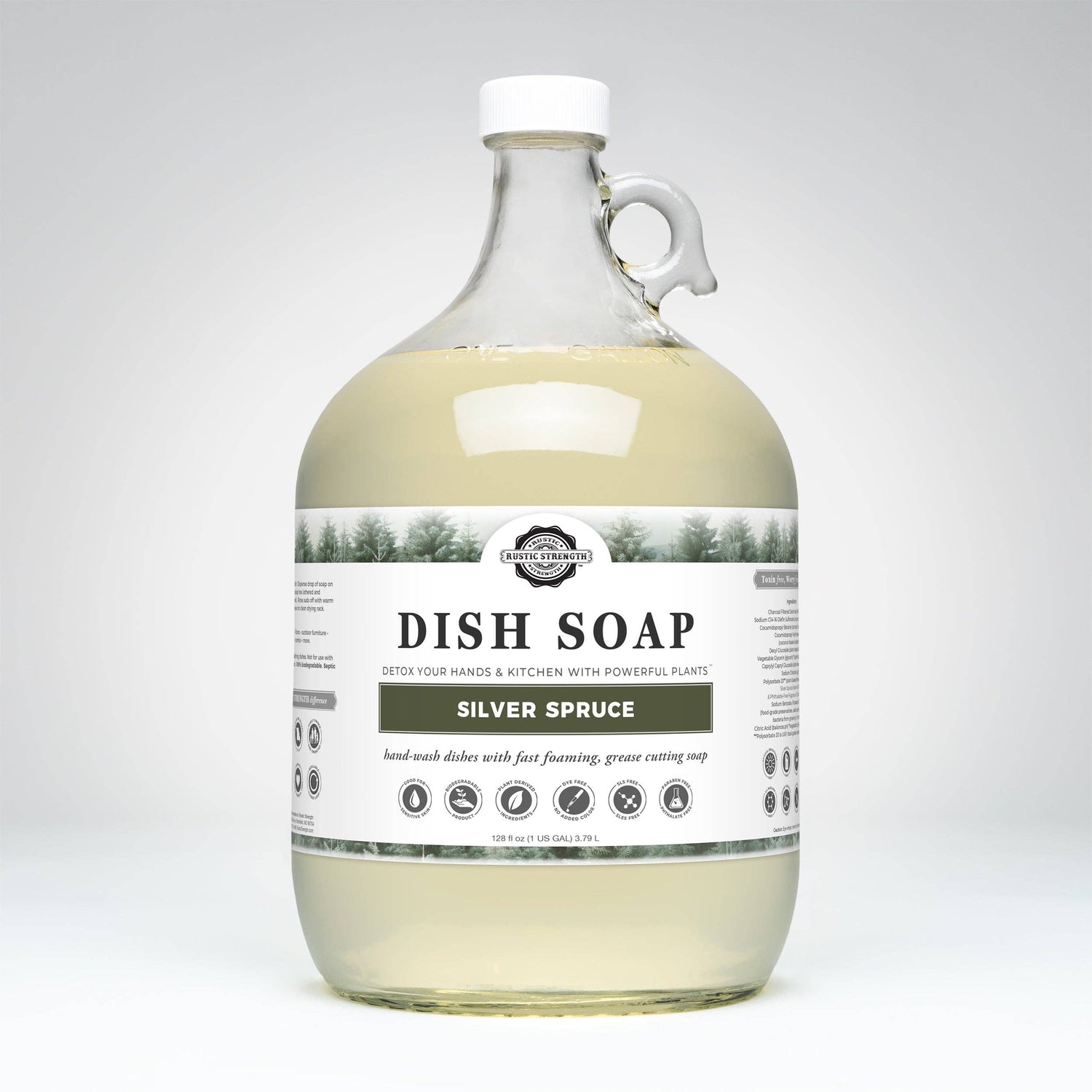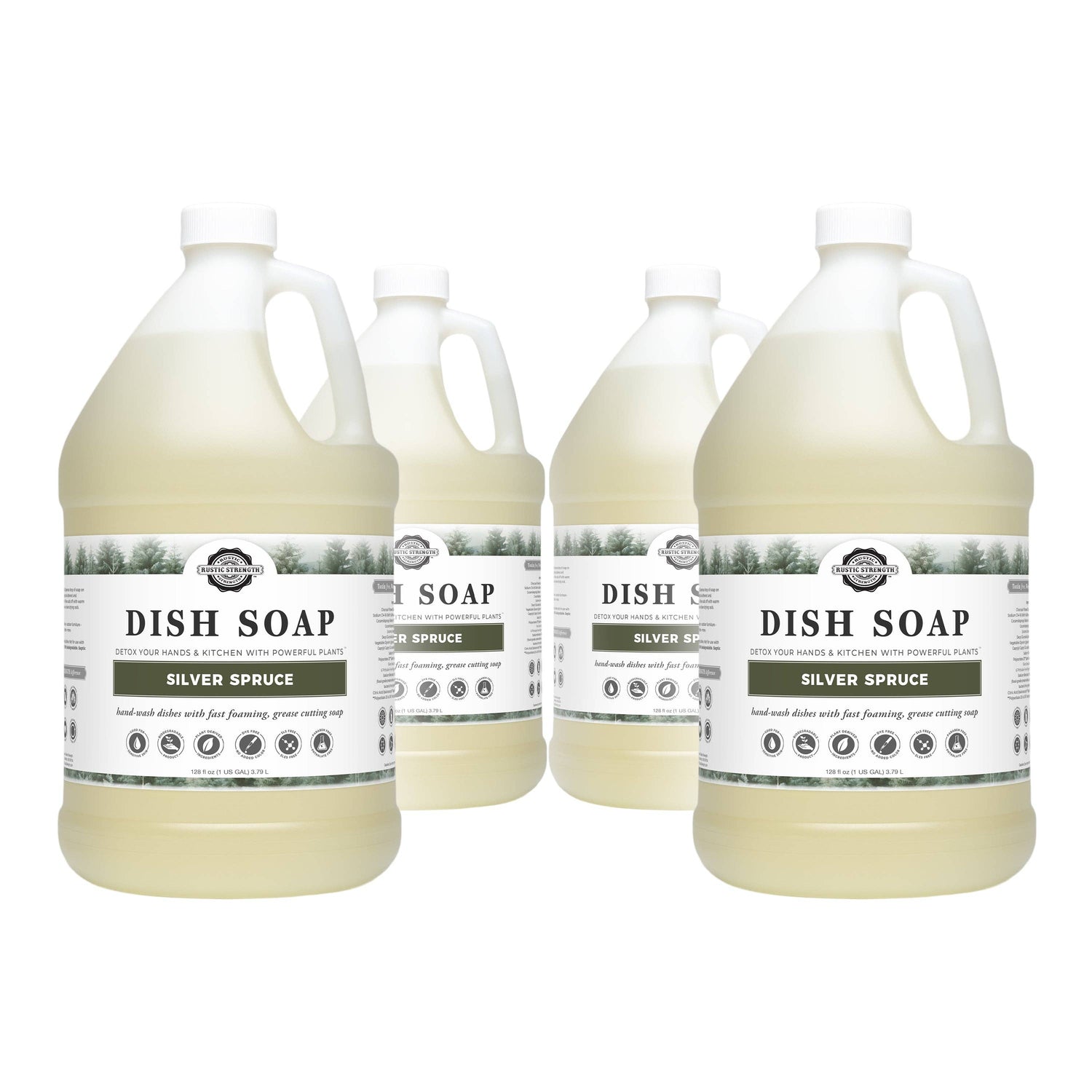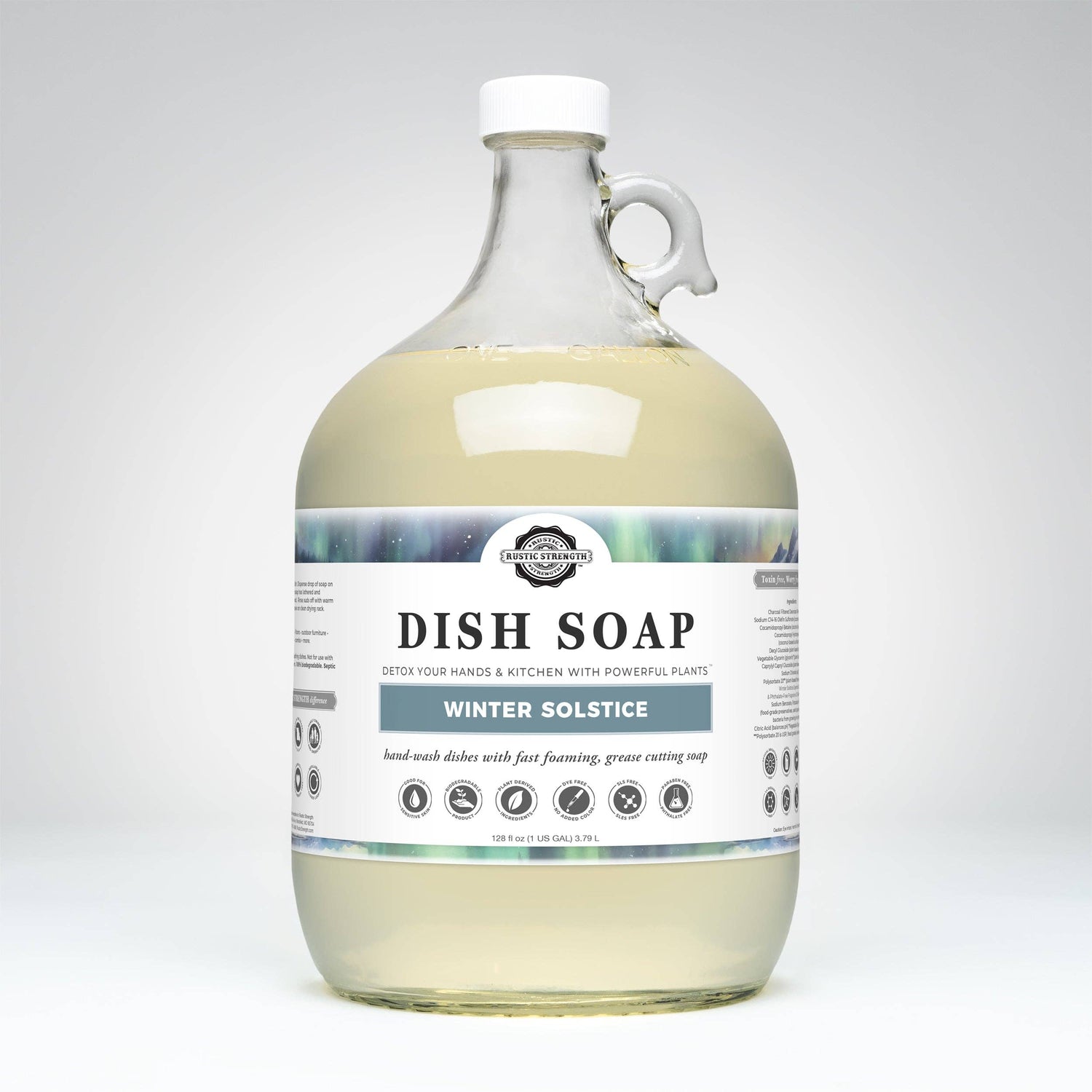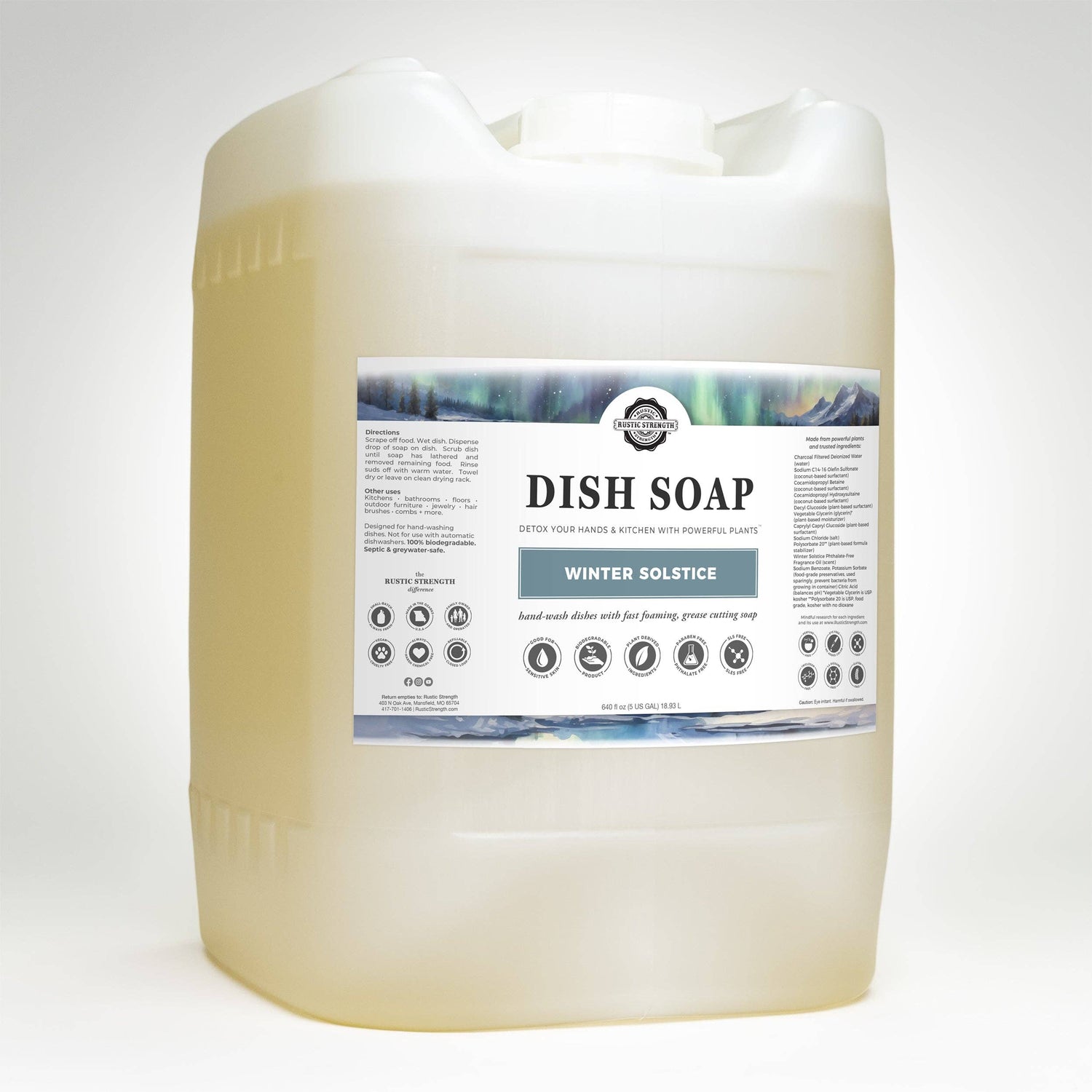 Strong-working Liquid Dishwashing Soap, made from renewable plant + earth mineral-derived ingredients.