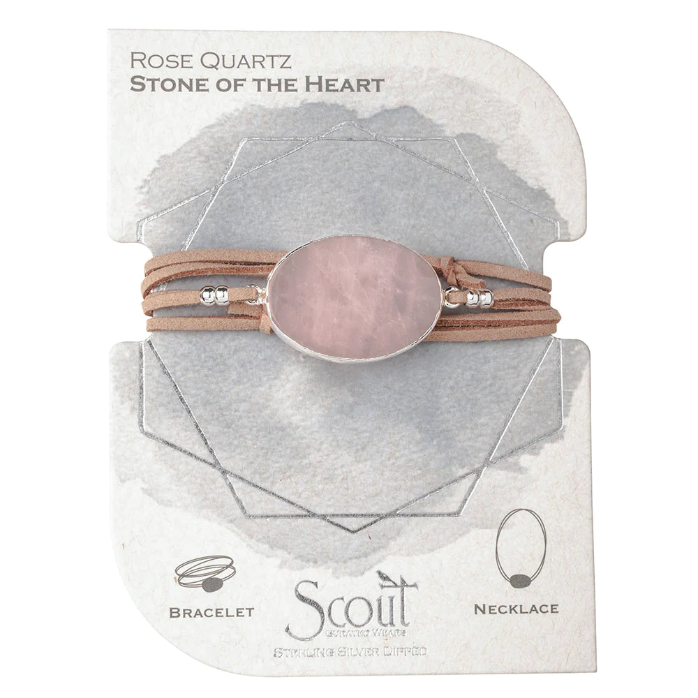 Suede & Stone Wrap Bracelet + Necklace | Rose Quartz + Silver