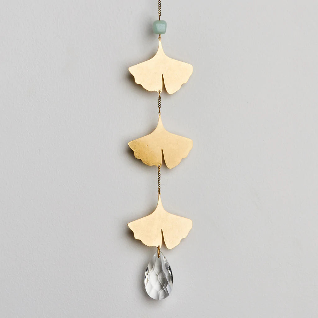 Captured sunlight transforms into beautiful rainbows that spread joy. Crafted from brass, semi precious gemstones and crystal.