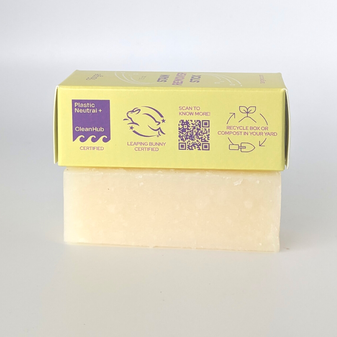 Tangie Stain Remover Bar is the eco-friendly tool that every laundry room should have! It is the perfect complement to Tangie Laundry Concentrate too. Low suggested retail price makes it an easy purchase for customers. The wholesale margin and compact size makes it as easy item for a pop-up shop, zero waste store, bulk, grocery, general mercantile, home stores, art & crafts, gift shop, health & wellness, spa salons to offer economic and ecological value to customers. Full Ingredients: Coconut Oil, Water, saponified Sodium Hydroxide, Lemon Juice, Borax. Best tool to eliminate tough stain makers like sweat, ink, babies, grass, food, pets, makeup and more. This is a solid bar of concentrated stain removal ingredients. + Leaping Bunny certified product. + Packaging is lightweight paperboard. Recyclable or home compostable. + Made in USA