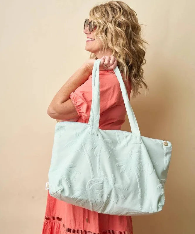 Terry Tote - Aqua Palm