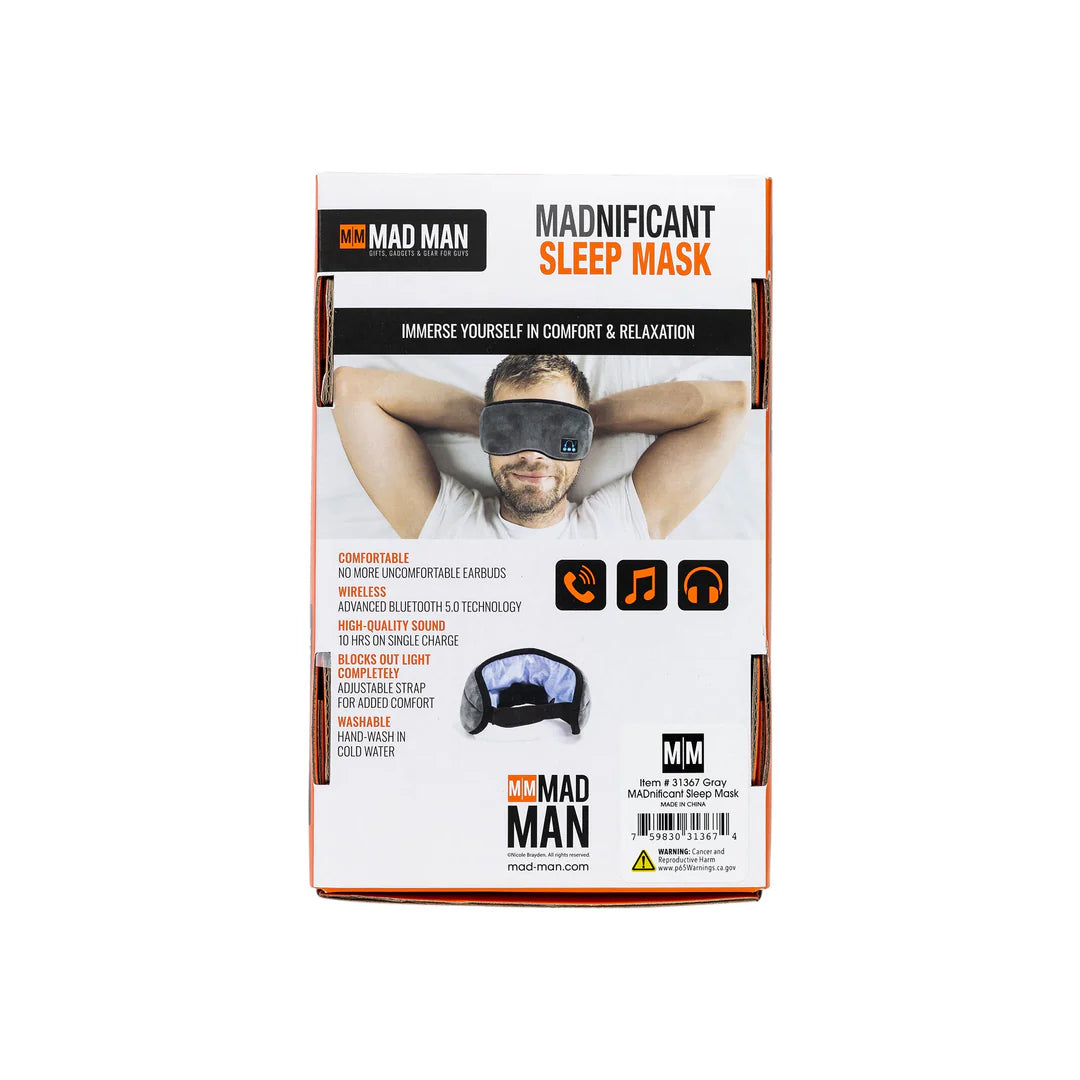 Immerse yourself in comfort and relaxation with the MADnificant Sleep Mask w/ bluetooth technology. Great for: Sleep, Relaxation, Meditation, Fighting Insomnia, Travel
