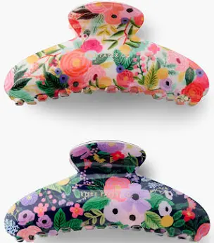 Clip back your hair with this set of two Garden Party claw clips in coordinating colorways of our signature floral.